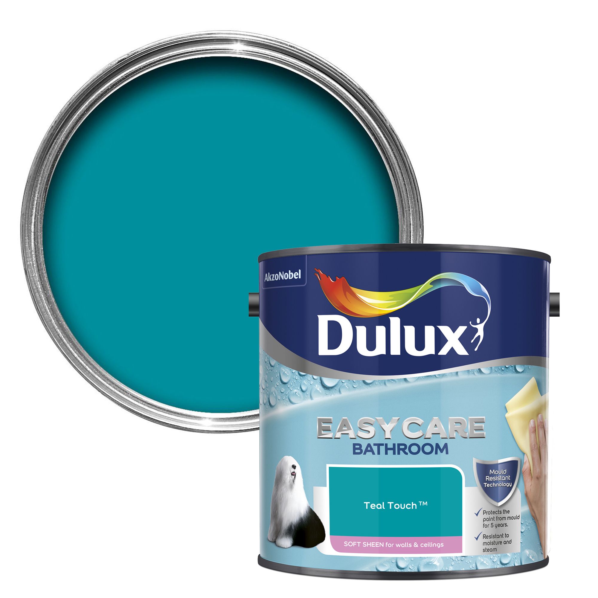 Dulux Easycare Bathroom Teal touch Soft sheen Emulsion paint 2.5L